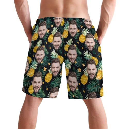 HOT ! Custom Mens Swim Trunks with Faces, Personalized Hawaiian Face Beach Shorts, Customized Funny Face Swim Shorts Gifts for Men