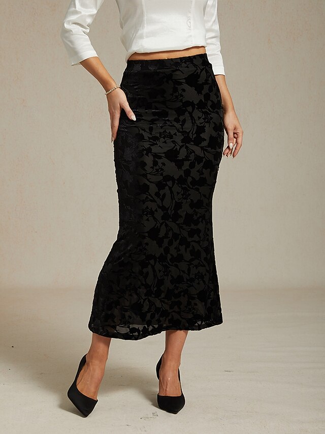 Women's Skirt Trumpet / Mermaid Elegant Vintage Maxi High Waist Skirts Stretchy Black Spring Velvet 8