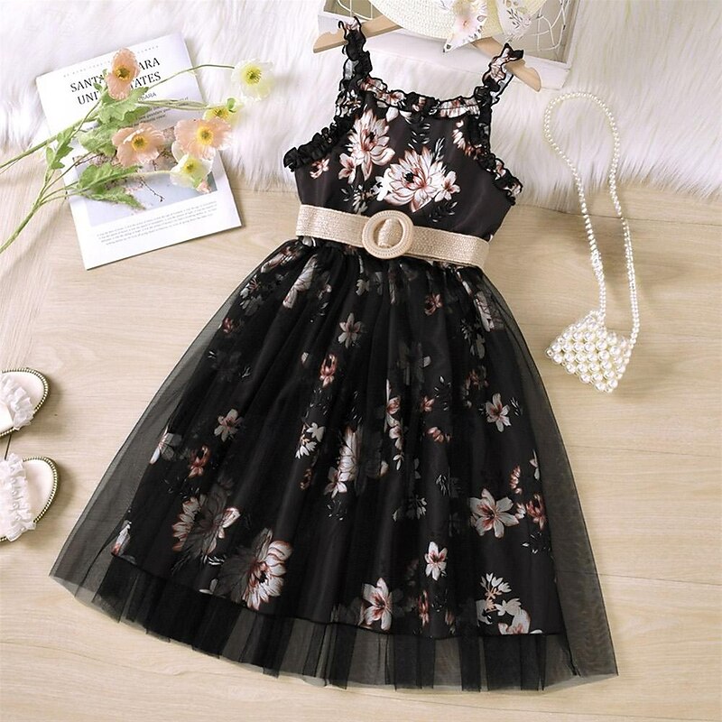 More information about Kids Girls' Dress Graphic Sleeveless Formal Performance Party Fashion Cute Polyester Summer Spring 3-13 Years Black White