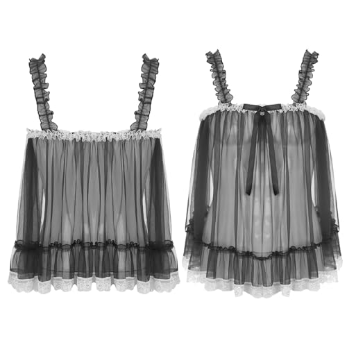 YiZYiF Mens Sissy Lingerie Nightie Dress Lace Sheer Tank Top Camisole Nightgown Crossress Nightdress 2
