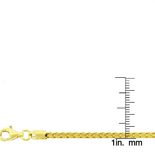 Giorgio Bergamo 925 Italian Sterling Silver 1mm - 5.5mm Solid Franco Chain, Yellow Gold Plated Square Box Link Necklace, Bracelet or Anklet 7