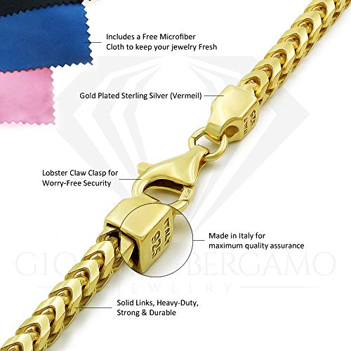 Giorgio Bergamo 925 Italian Sterling Silver 1mm - 5.5mm Solid Franco Chain, Yellow Gold Plated Square Box Link Necklace, Bracelet or Anklet 5
