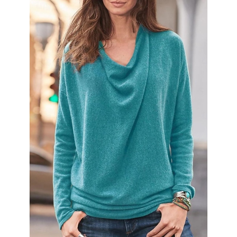 More information about Women's Blouse Solid Color Stylish Casual Long Sleeve Cowl Neck Regular Tops Daily Ruched Yellow Pink Red Blue Orange Summer Spring Fall