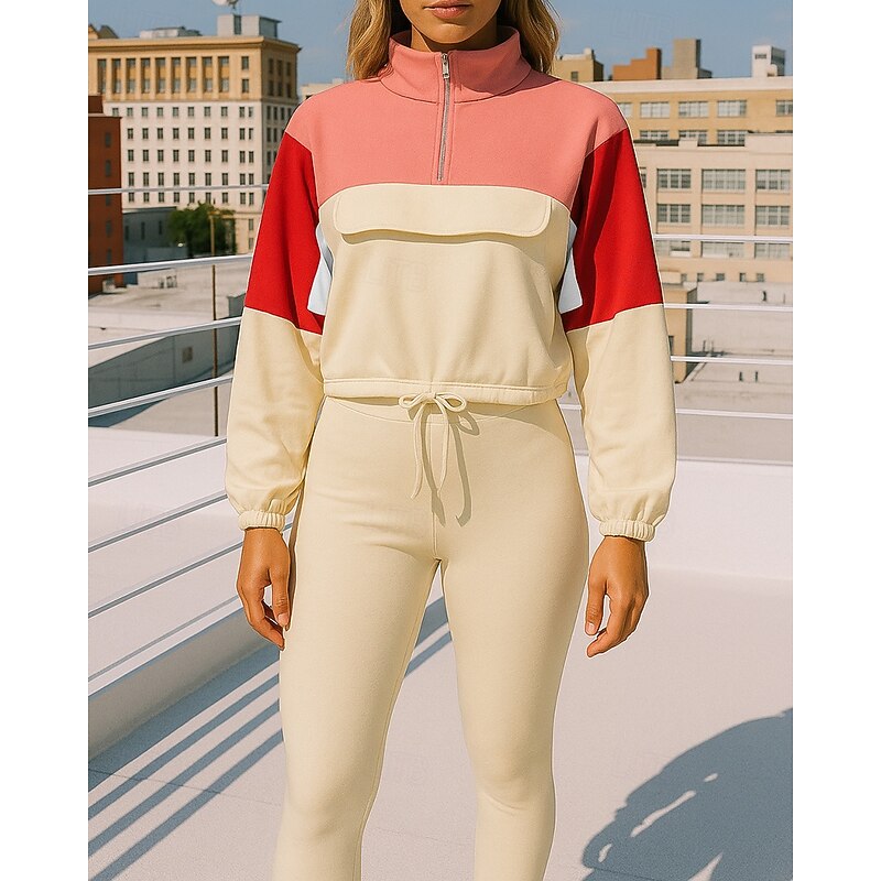 $36.99 - Women's Tracksuit Sweatpants Sportswear Quarter Zipper with Pocket Color Block Clothing Suit Fall Red Blue Outdoor Travel Sports High Waist Long Sleeve Sport Activewear Micro-elastic Regular Fit 2025. Shop for cheap Tracksuits online? Buy at lightinthebox.com on sale today!