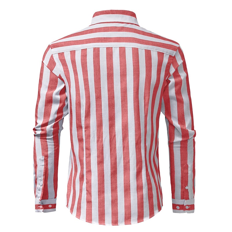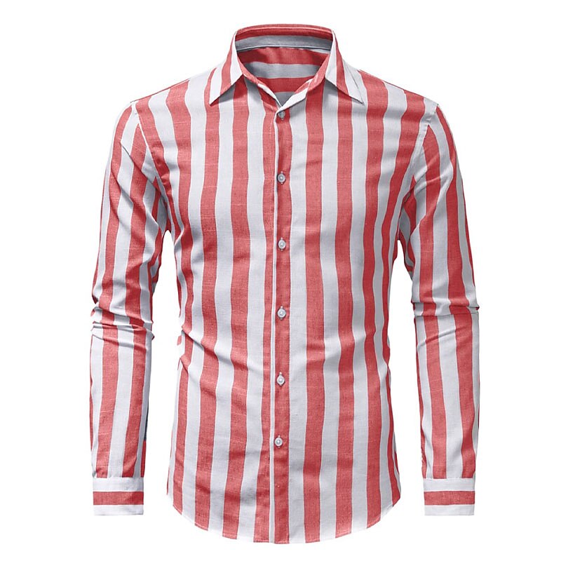 More information about Men's Shirt Summer Shirt Casual Shirt Beach Shirt Button Up Shirt Striped Shirts Black Red Blue Green Gray Long Sleeve Striped Grandad Collar Collar Vacation Daily Print Clothing Apparel Polyester