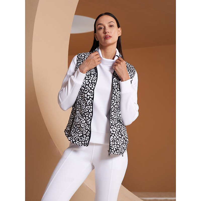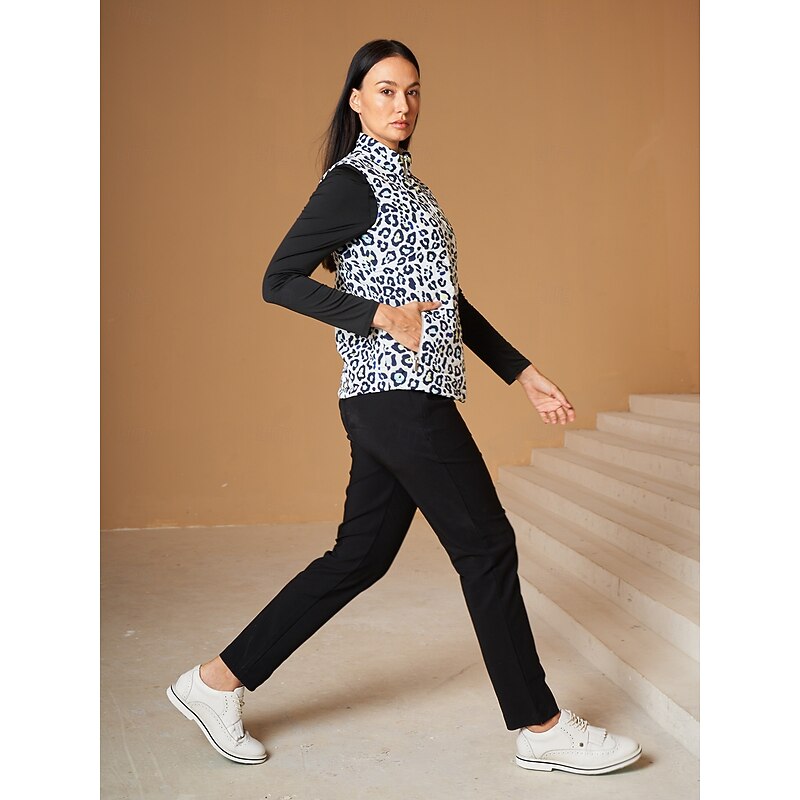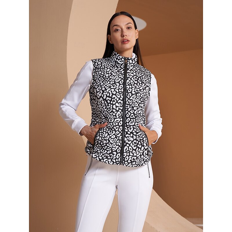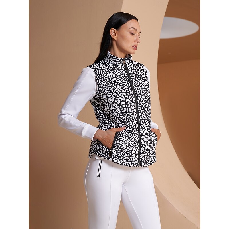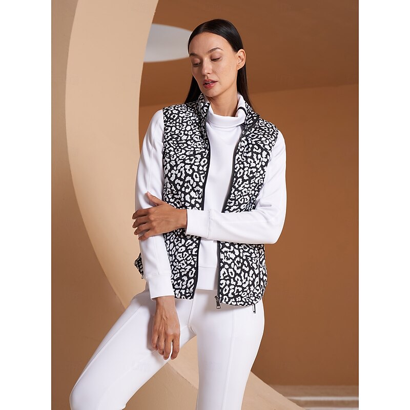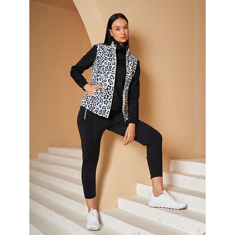Women's Golf Jacket Black White Sleeveless Vest / Gilet Ladies Golf Attire Clothes Outfits Wear Apparel 5