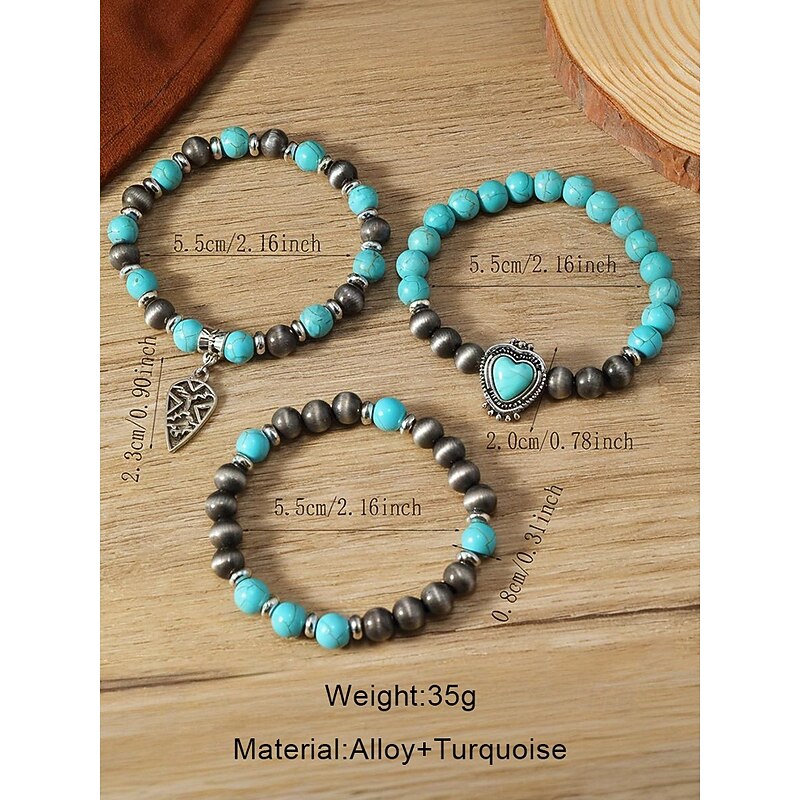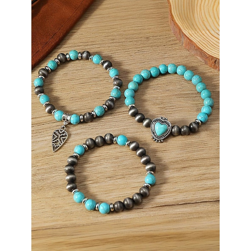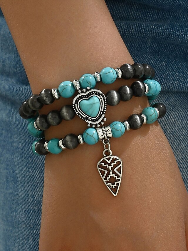 $9.99 - Women's Turquoise Beaded Bracelet Set with Heart Pendant, Bohemian Layered Stretch Wristband Jewelry for Casual Wear, Parties and Gifts 2025. Shop for cheap Women's Bracelet online? Buy at lightinthebox.com on sale today!