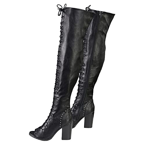 Milwaukee Leather MBL9421 Women's Black Lace-Up Knee-High Fashion Casual Boots with Open Toe 6