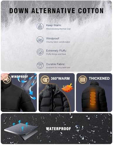 • 【Material】Winter black puffer jacket men is made of high quality material, lightweight, soft, comfortable, cozy and windproof, water-resistant fabric, winter quilted puffer parka for Men, down puffer jacket for men keep you warm in cold winter.