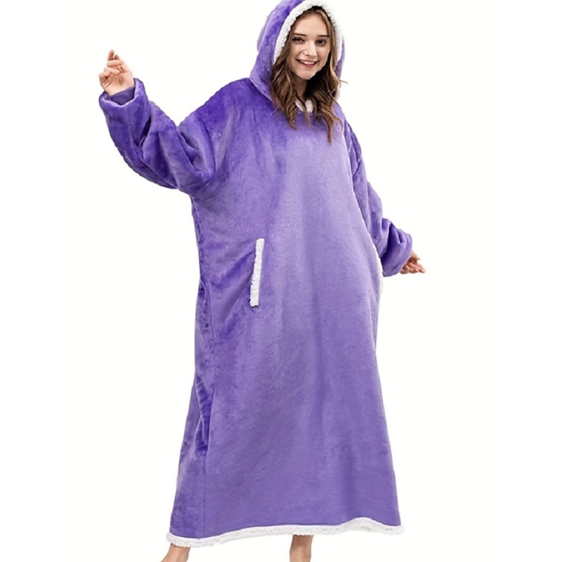 More information about Adults' Oversized Hoodie Blanket Wearable Blanket With Pocket Solid Color Onesie Pajamas Flannel Cosplay For Men and Women Carnival Animal Sleepwear Cartoon Festival / Holiday Costumes