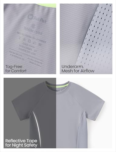 PATPAT Kids Quick-Dry T-Shirt & Shorts Set, 2-Piece Instant-Cooling UPF 100+ Activewear Outfit for Boys Girls, Breathable Athletic Sportswear, Vapor Gray, Size US8/S 5