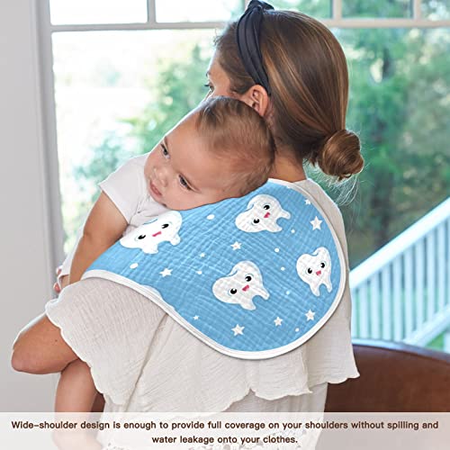 Tooth Pattern Cute Teeth Star On Blue Muslin Burp Cloths for Baby 2 Pack 100% Cotton Baby Washcloths Bibs for Boy Girl 1