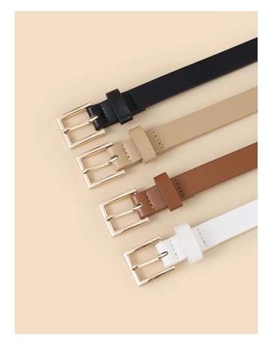 Set of 4 Women Skinny Belts Faux Leather Thin Waist Belt with Gold Buckle for Pants Jeans Dresses Ladies 4