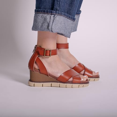 • VEGAN LEATHER FOR DURABILITY: Crafted from high-quality vegan leather, the Lauri vegan leather wedge sandals for women deliver durability and are a cruelty-free choice; the material is easy to maintain and is breathable