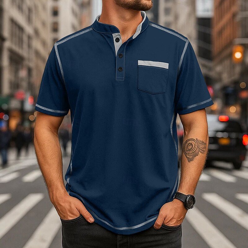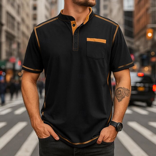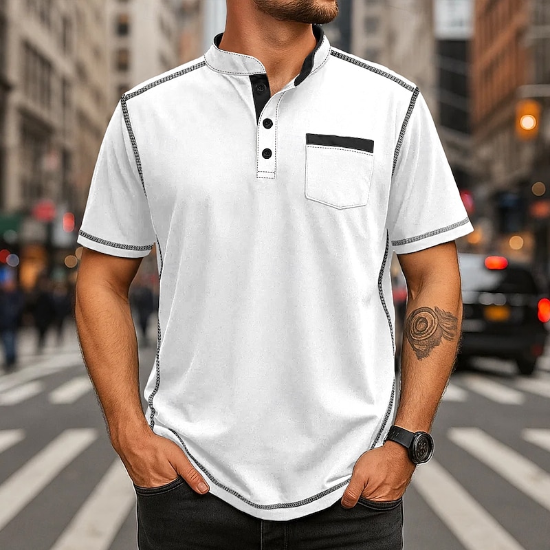 More information about Men's Henley Shirt Tee Henley Top Short Sleeve Solid Color Plain Solid Fashion Designer Casual Color Block Buttons Plain Henley Collar Henley Outdoor Casual Daily Summer All Seasons Black White Navy