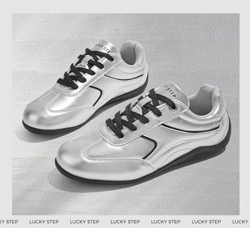 LUCKY STEP Women's Retro Casual Fashion Sneakers Classic Tennis Thin Sole Low Top Lightweight Running Trainer Trendy Cute Walking Shoes Comfortable Footwear 1