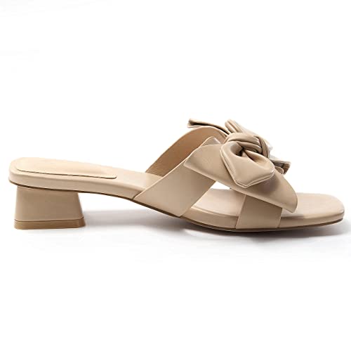 Womens Bow Dressy Low Heel Sandals Slides Summer Chunky Block Heeled Open Toe Mules Slip on Slippers Shoes 6