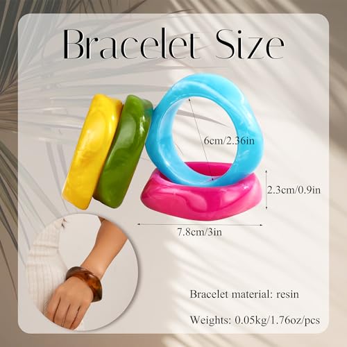 • Women Bangles: Our resin chunky bangle bracelets 6 pcs a set, including rose red, yellow, white, sky blue, green and amber bangles. These acrylic bangles make for a suitable accessory option adding an element of variety to your outfit choice, show your fashion and unique charming