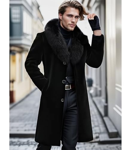 INVACHI Men's Faux Fur Coat Winter Long Faux Mink Coat Fluffy Thick Trench for Men 4