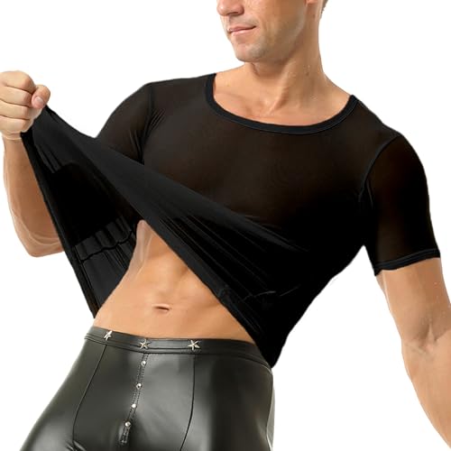 • Mens Sheers Shirts : This mens mesh undershirt was made of 80% Polyamide,20% Elastane, which is soft and breathable, lightweight and has good elasticity, comfortable to wear