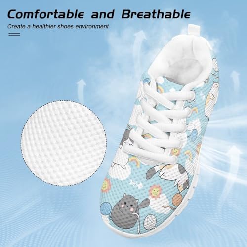 Yzaoxia Cute Cat Little Girls Size 13 Sneakers Running Shoes for Kids Barefoot Shoes Athletic Hiking Sneaker Blue Flat Trainers Mesh Footwear for School Gym 6