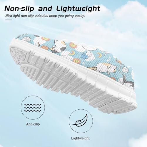 Yzaoxia Cute Cat Little Girls Size 13 Sneakers Running Shoes for Kids Barefoot Shoes Athletic Hiking Sneaker Blue Flat Trainers Mesh Footwear for School Gym 1