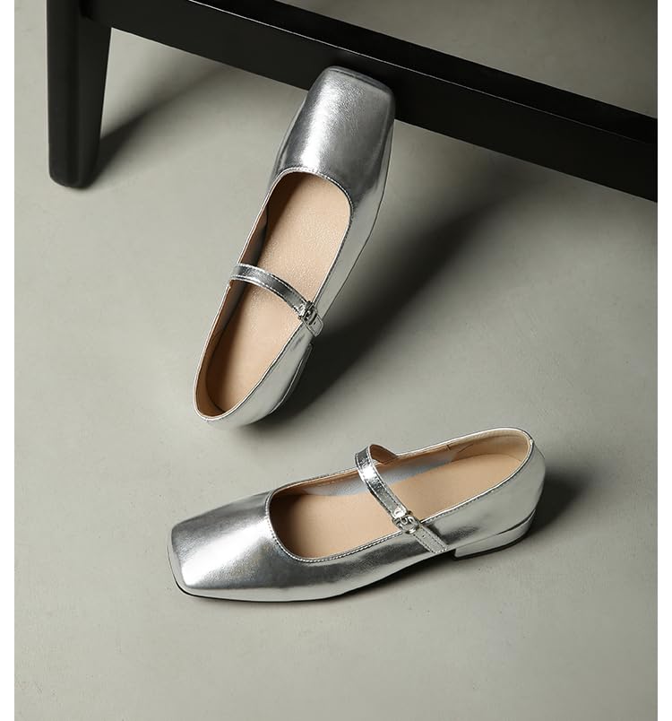 Mary Jane Shoes Women Metallic Shoes Ballet Flats Silver Shoes Coquette Aesthetic Clean Girl Aesthetic 6