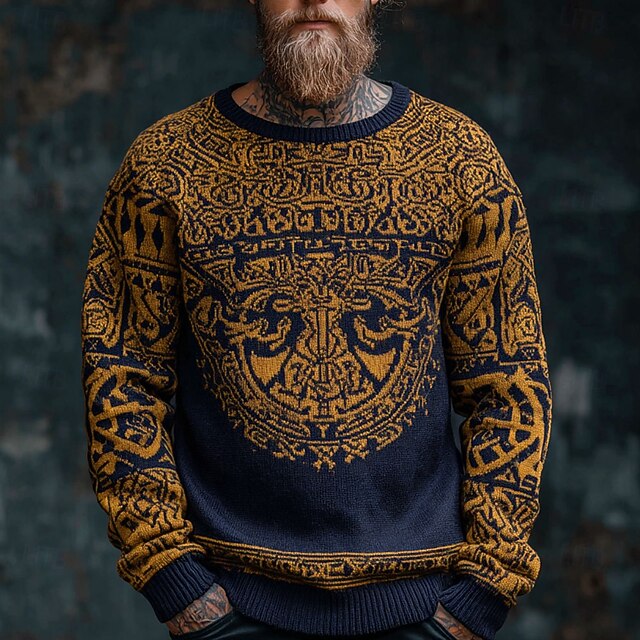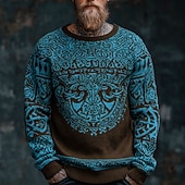 More information about Men's Viking Pullover Sweater Jumper Knitwear Crewneck Retro Vintage Casual Vacation Daily 3D Print Knitting Keep Warm Long Sleeve Spring Fall Winter Red Blue Brown