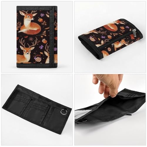 HOT ! High Capacity Autumn Leaves Fall Foxes Deer Wallet for Women, Wallets with ID Pockets And Key Chain, Slim Trifold Wallet for Outdoor Travel