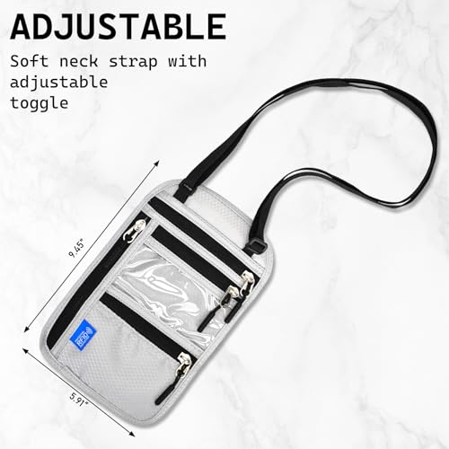 HOT ! Neck Wallet Passport Holder for Men Women RFID Blocking Water Resistant Hidden Travel Pouch with Adjustable Strap Holds Phone Cards Cash (light gray)