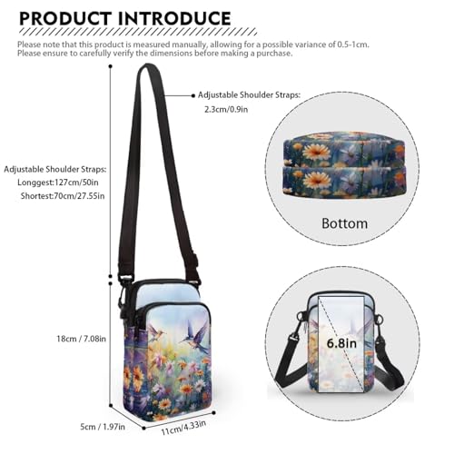 More information about Hummingbird Floral Print Cross Body Bag, 2 Layer Portable Messenger Storage Bag Satchel Bags for Women Girls School Travel Work Sport