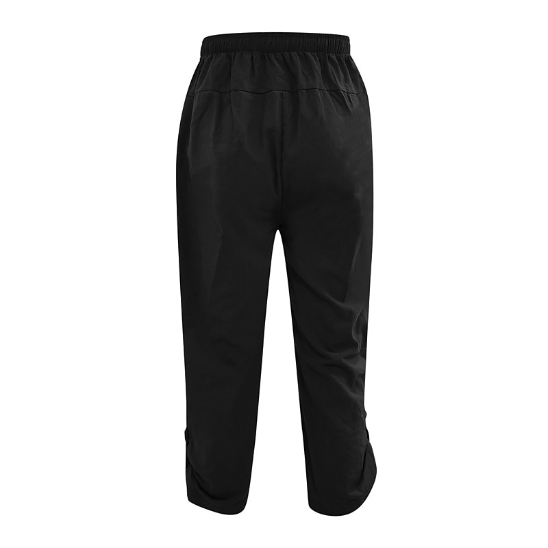 More information about Men's Linen Shorts Summer Shorts Bloomers Baggy Pants Beach Shorts Elastic Drawstring Design Front Pocket Plain Comfort Soft Calf-Length Casual Daily Sports Fashion Black White