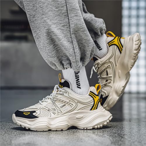 Men's Fashion Breathable Chunky Platform Lace-Up Sneakers Retro Non Slip Workout Sport Dad Shoes for Tennis Walking Driving Daily 5