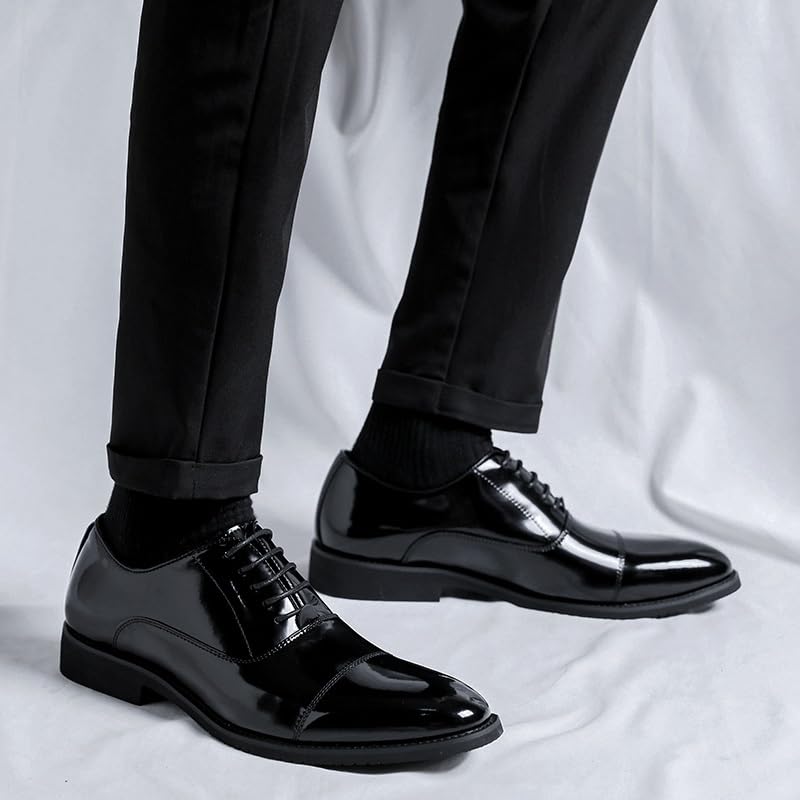 Formal Dress Shoes for Men Lace Up Pointed Toe Vegan Leather Cap Toe Oxford Shoes Non Slip Block Heel Rubber Sole Anti-Slip Classic 6