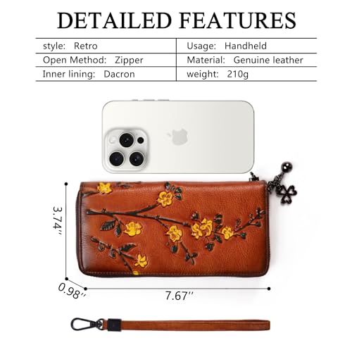 More information about Wallet Genuine Leather for Women - with RFID Blocking Card checkbook ID Slot Large Capacity Vintage style (flower brown)