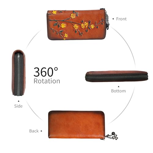 Wallet Genuine Leather for Women - with RFID Blocking Card checkbook ID Slot Large Capacity Vintage style (flower brown) 1