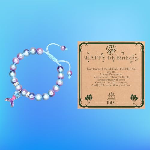 POTUS Mermaid Natural Stone Bracelet for Daughter Granddaughter Niece 4th Birthday Gift 3