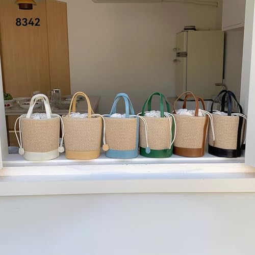 • straw bucket bag:Want to take your sense of style to the next level? This trendy naturally casual straw woven tote/shoulder bag made with high quality straw material and easy over-the-shoulder PU leather handles is a talking point wherever you go.