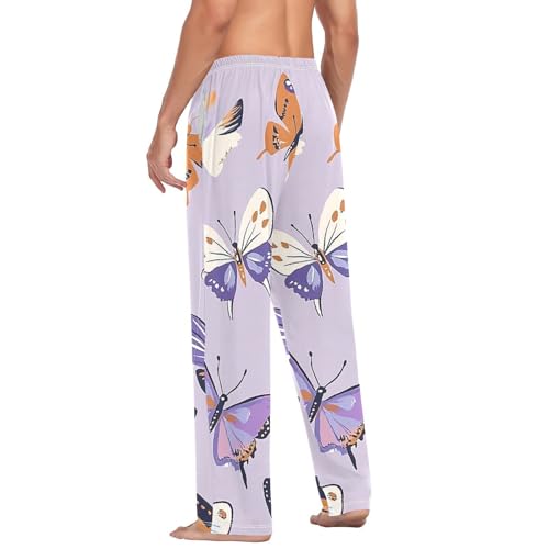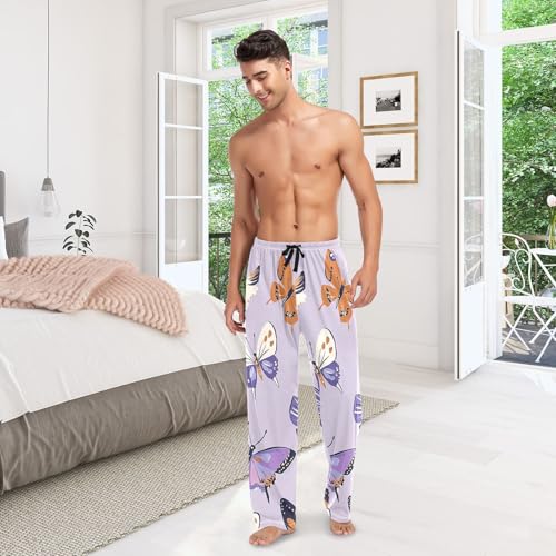 HOT ! Purple Butterfly Men's Pajama Bottoms Plaid Pajamas Pants for Men Soft Long Lounge Woven Pj Sleep Pant with Pockets