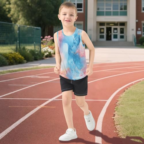 Boys Tank Top Shirts Pink Red Blue Marble Sleeveless T-Shirts Crew Neck for Kids Clothing Children 5