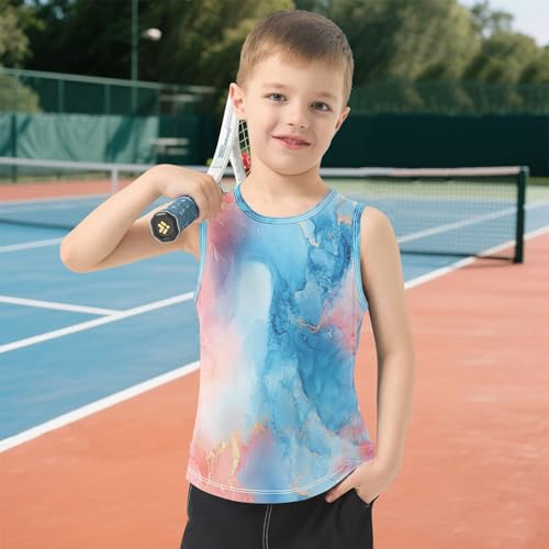 Boys Tank Top Shirts Pink Red Blue Marble Sleeveless T-Shirts Crew Neck for Kids Clothing Children 1