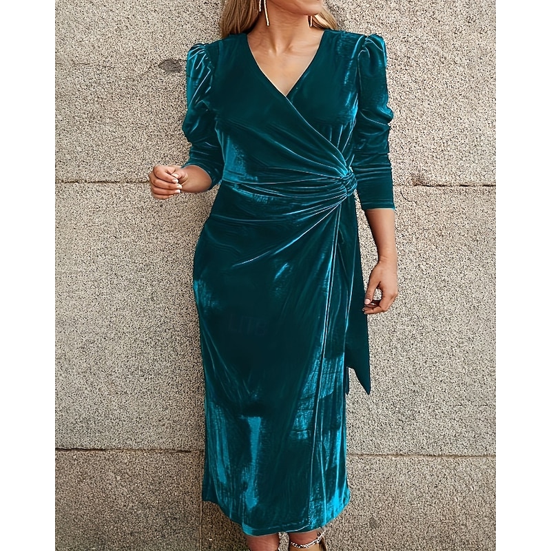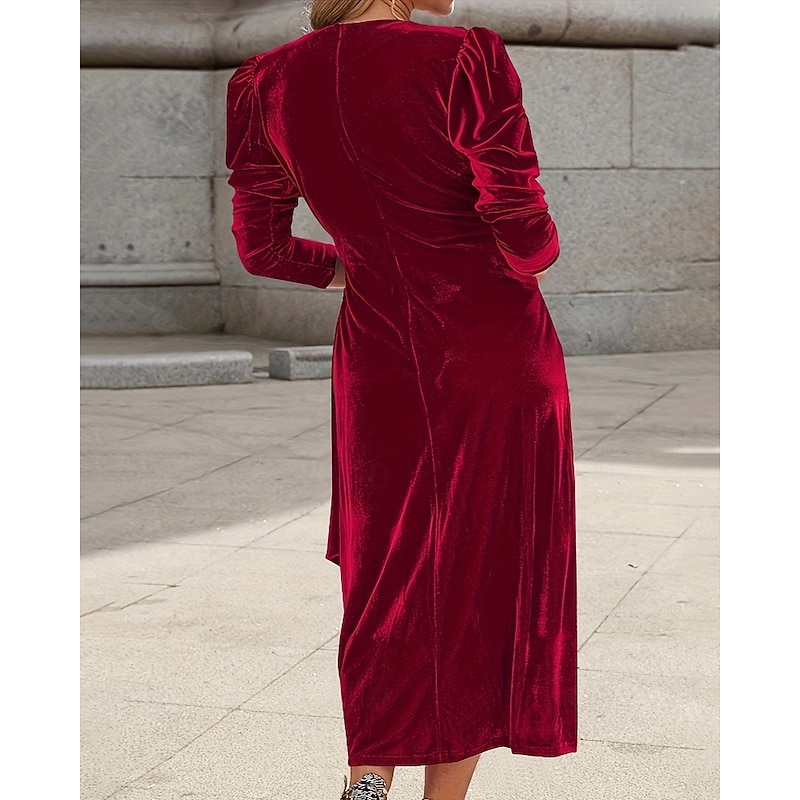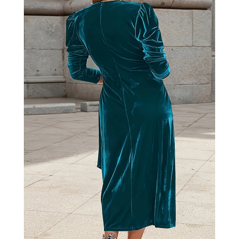More information about Women's Midi Dress Velvet Dress Party Dress Cocktail Dress Elegant Fashion Modern Party Evening Party Date Regular Fit Plain Long Sleeve Crew Neck Black Wine Green Dark Blue Fall Winter