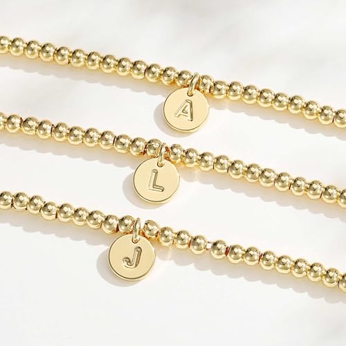 Turandoss Gold Bracelets for Women Gifts - Dainty 14K Gold Plated Stackable Beaded Bracelets for Women Trendy, Gold Beaded Stacking Monogram Bracelet, Gold Jewelry Gifts for Women 3