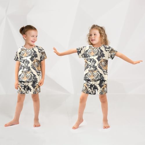 ALAZA Black Yellow Tiger Pajamas Set Short Sleeve Cotton Sleepwear Summer Pjs 2 Piece 5-14Y 2