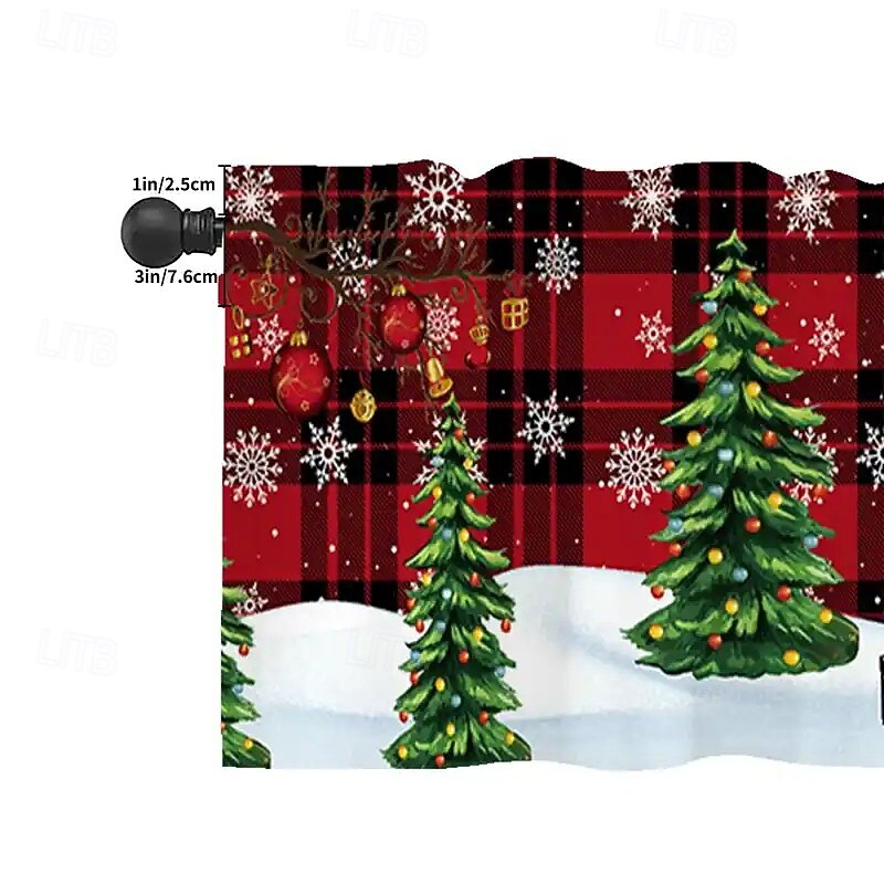 HOT ! 1 Piece Of Christmas Kitchen Short Curtain - Featuring A Festive Snowman And Checkered Design With A Semi Transparent Farmhouse Style And Pole Pockets Suitable For Decorating Living Rooms Bedrooms Bathr