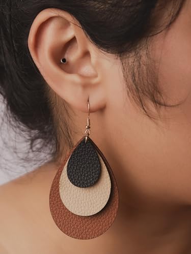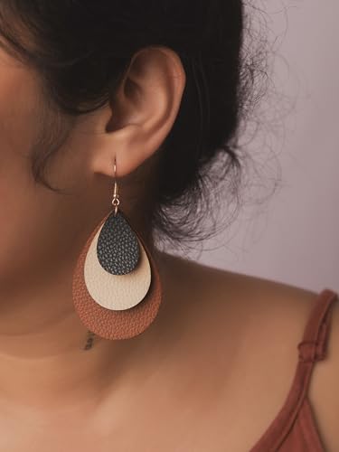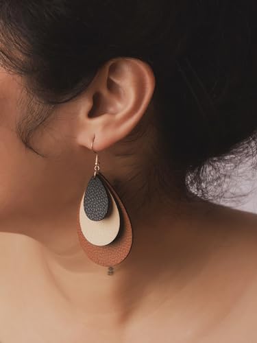 • BOHO CHIC DESIGN: These earrings feature a unique waterdrop shape with a triple-layered teardrop design in black, brown, and beige leather.