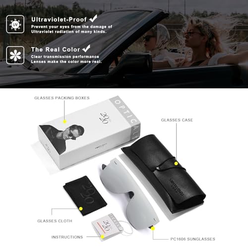 Rimless Sunglasses For Women Men One Piece Square Oversize Mirror Lens Anti Reflective 4