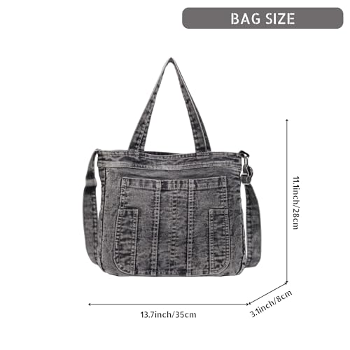 Y2K Denim Tote Bag for Women, Washable Canvas, Multi-Way Carry Hand Shoulder Crossbody Bag, Lightweight for Work Travel 5