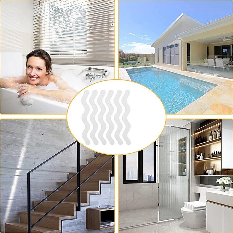 12pcs Anti Slip Strips S Wave-shaped Shower Non-slip Stickers Self-adhesive Waterproof Bath Safety Strip for Bathtub Shower Home 10