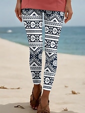 More information about Women's Pants Trousers Leggings Vintage Casual Full Length High Waist Geometric Elastic Waist Print Breathability Comfortable Stretchy Vacation Street Daily Wear Yellow Blue Summer Spring Fall
